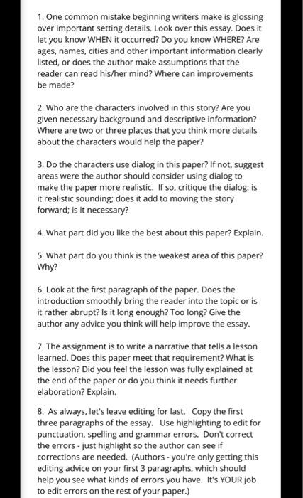 1 One Common Mistake Beginning Writers Make Is Chegg Com